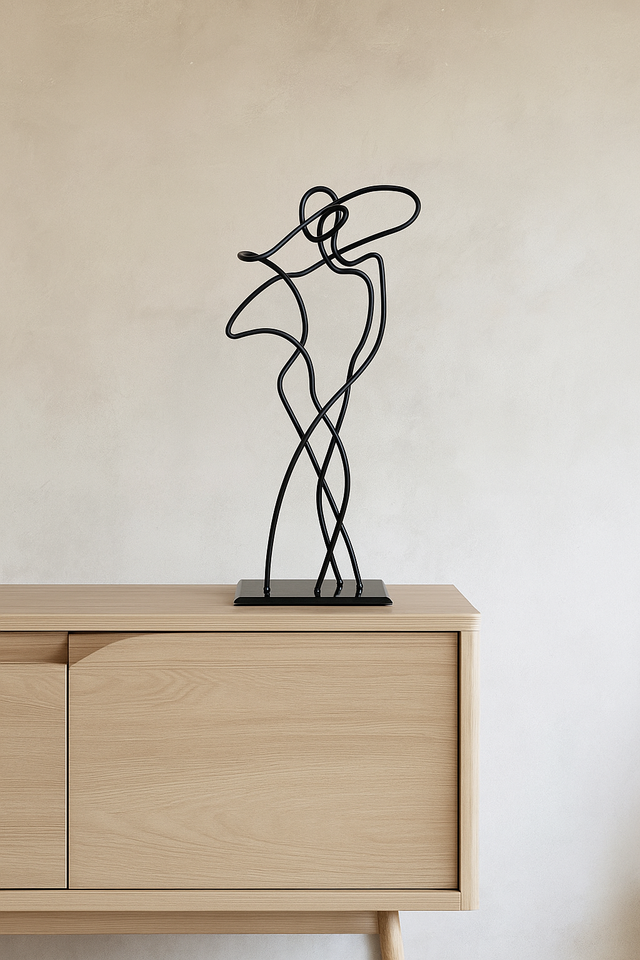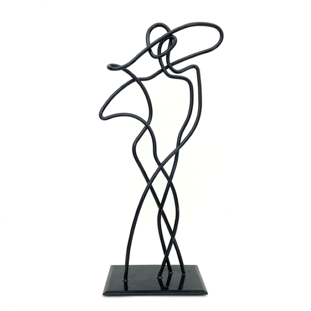 La Diva Noir est une sculpture raffinée conçue à la main par Rémi PLAULT. Utilisant des tiges de métal, elle représente une silhouette féminine élégante avec un chapeau et la main droite sur la hanche. Peinte en noir, cette œuvre est idéale pour l'intérieur. Chaque pièce est unique et livrée avec un certificat d'authenticité.